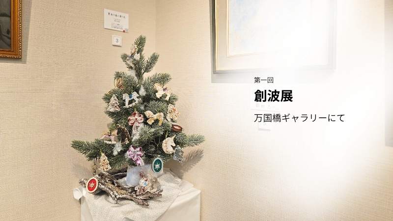 このときの展示では、創波展の空間に合わせて、ブローチをクリスマスツリーのオーナメントのようにして飾るイメージを思い描いていました。