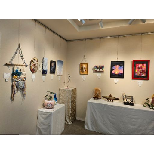 絵画写真アクセサリー工芸など、多様なジャンルの作品50点が一堂に並び、それぞれに作家が描くアートの世界を表現されていました。