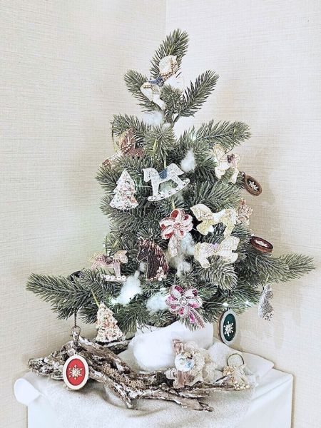 『創波展』では、コーナーに設置してもらえたので、前面に集中して飾ることができて、にぎやかなツリーになりました。