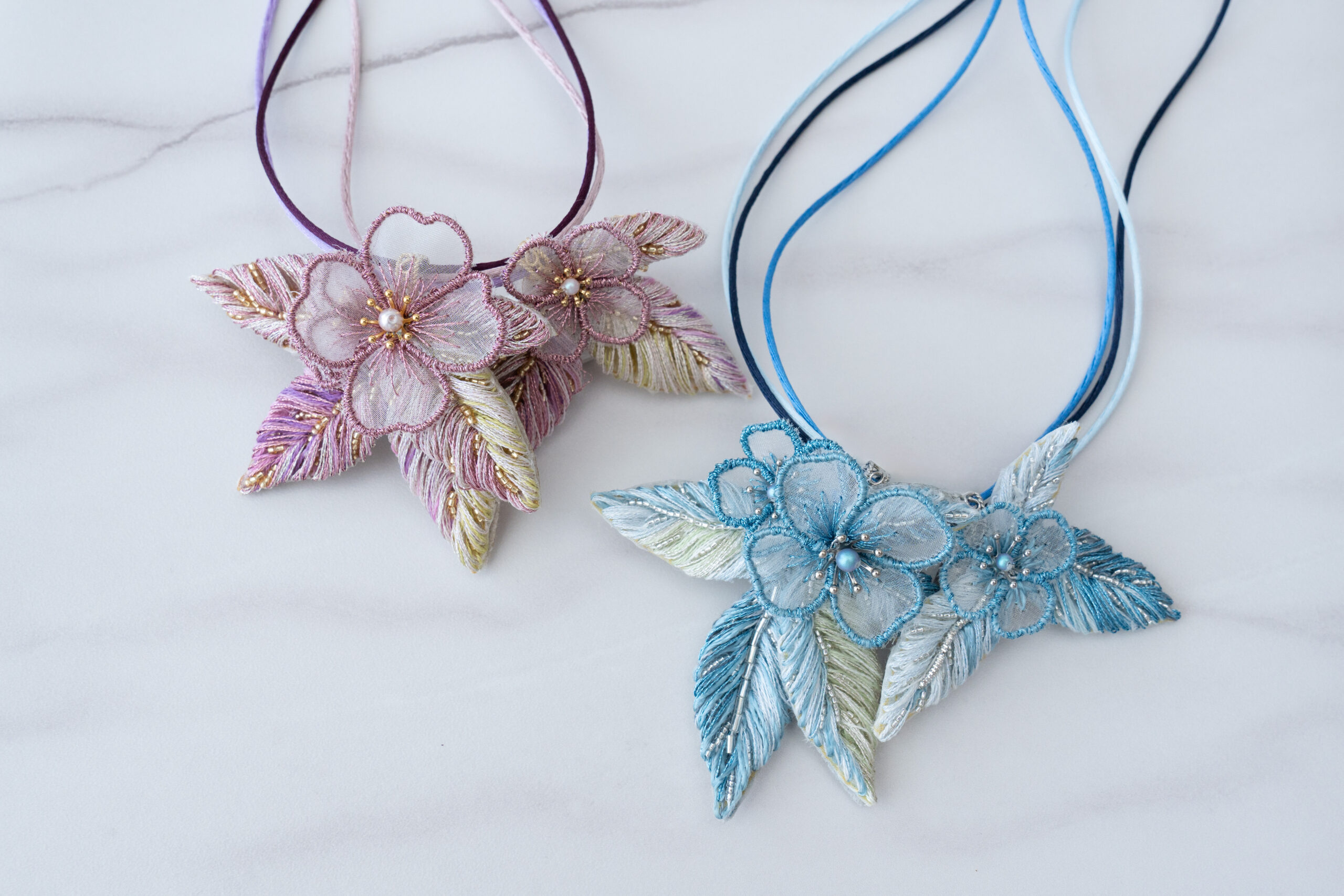 近年ではアクセサリーや小物作りにも広く取り入れられており、当講座ではその中でも「針を使った技法」を中心に学んでいただけます。
