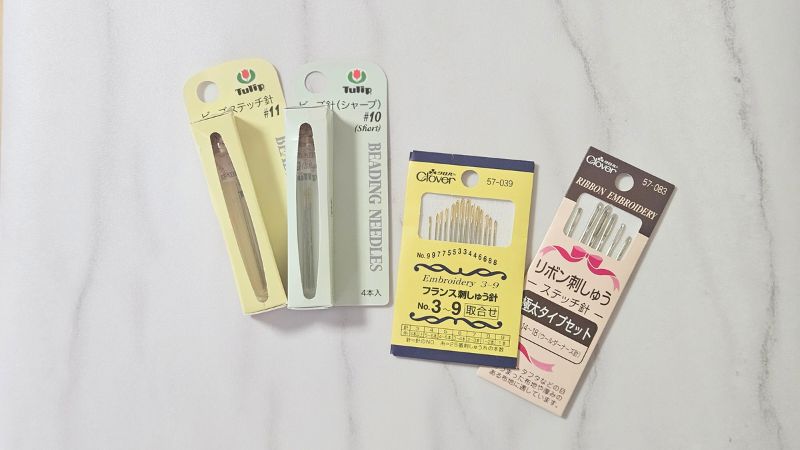 ただし、特小ビーズを縫い留めたいときは、「ビーズ針 シャープ#10 Short」を使用することもあります。